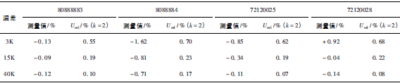 表7-1 熱量測(cè)量值與參考值之差值的擴(kuò)展不確定度(k=2)表 %