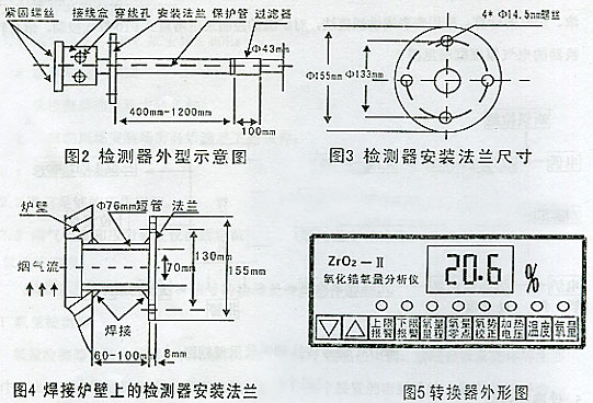 氧量檢測器由防塵裝置、氧化鋯管、加熱電爐、測溫熱電偶、接線盒以及殼體等主要部件組成。整個裝置采用全封閉型結構,以增加整個裝置的密封性能,提高使用壽命。