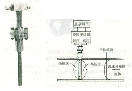 威力巴流量計(jì)是一種插入式流量測量儀表。在管道中插入一根威力巴傳感器 ,傳感器在高、低壓區(qū)有按一定規(guī)則排列的多對(duì) 一般為三對(duì)取壓孔。分別測量流體的全壓力包括靜壓力和平均速度壓力Pl和靜壓力P2。將P1和P2 分別引入差壓變送器 , 測量出差壓 △P=P1-P2, △P反映流體平均速度的大小 , 以此可推算出流體的流量。