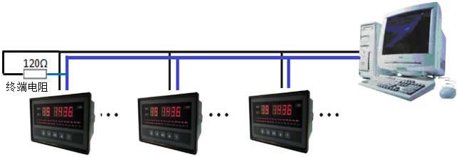 通訊線請使用屏蔽雙絞線,波特率為19200bps以上時,通訊線長度不能超過1000米。在通訊線長度大于100米的條件下進行通訊時,為減小反射和回波,必須增加阻值為120歐姆的終端匹配電阻,終端匹配電阻應(yīng)加在RS-485通訊線的最遠兩端。