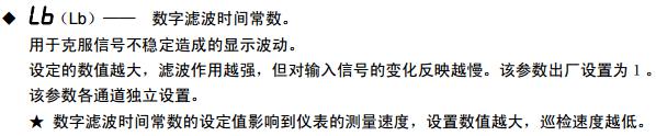 也可以通過儀表軟件參數(shù)Lb來克服信號不穩(wěn)定造成的波動,Lb參數(shù)是各通道獨立設(shè)定數(shù)字濾波時間常數(shù),提高顯示穩(wěn)定性。