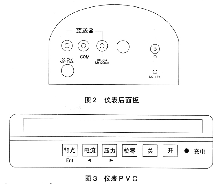 2、校零鍵:測量前,按一下此鍵,儀表自動將傳感器的零點值采集并送CPU進行處理,保證儀表所測數(shù)據(jù)為實際壓力值。