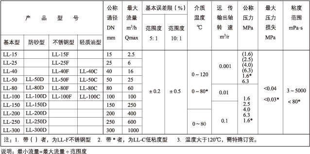 腰輪流量計(jì)的主要技術(shù)指標(biāo):