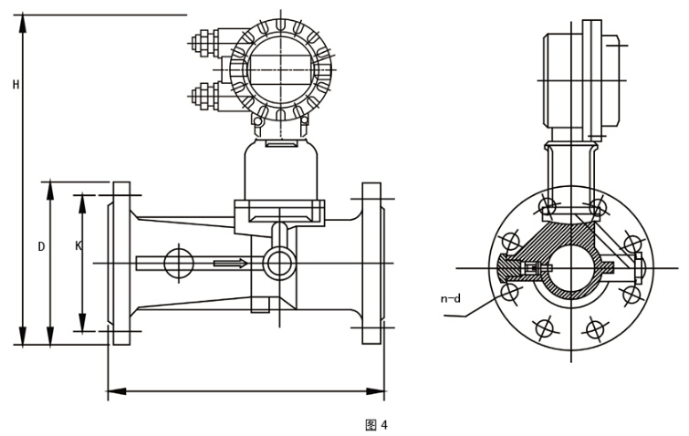 1、流量計(jì)外形尺寸(見(jiàn)圖4和表2)